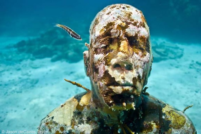 Step one: Create life-like sculptures of human beings. Step two: submerge those sculptures in ocean water. Step three: watch nature do it’s work.